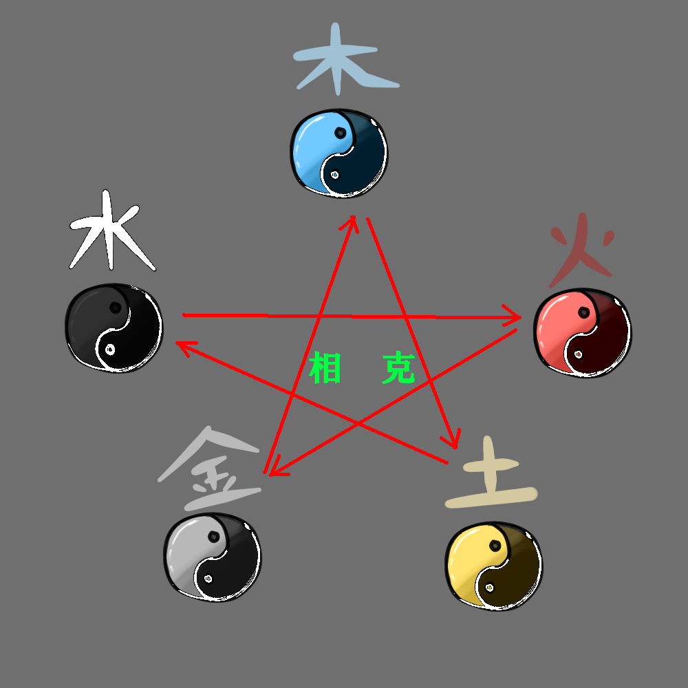 自然現象の四季変化を観察し抽象化された、自然現象、政治体制、占い、医療など様々な分野の背景となる性質、周期、相互作用などを説明する5つの概念である。単に5種の基本要素(エレメント)というだけでなく、変化の中における5種の、状態、運動、過程という捉え方もされる。